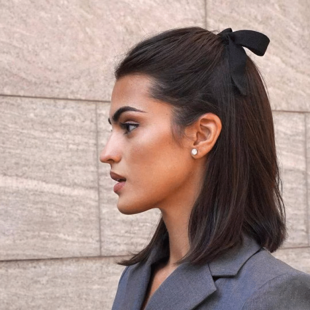 Este peinado eleva los rasgos y despeja el rostro sin dejarlo totalmente descubierto. Ideal para días casuales.