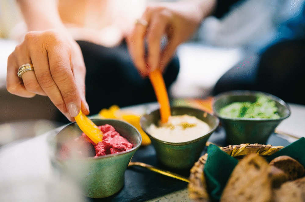 Los vegetales crujientes como la zanahoria, el pepino o el apio combinan muy bien con el hummus, una crema de garbanzos rica en proteína vegetal.